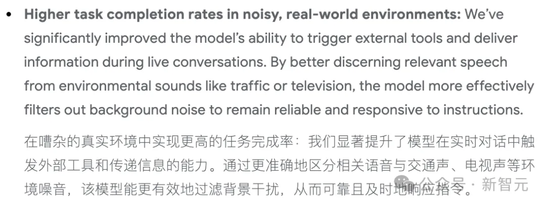 新模型显著提升了在嘈杂、真实环境中的任务完成率,能更准确地区分有效语音和交通声、电视声等环境噪音。