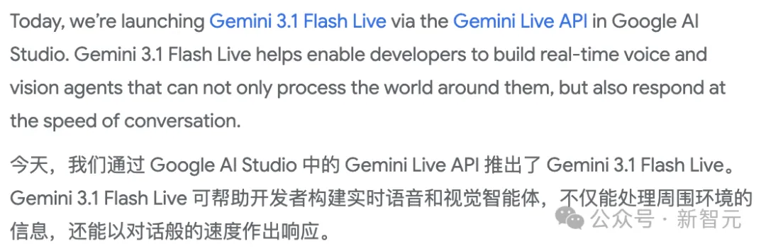 Google AI for Developers的版本说明也确认了模型名为gemini-3.1-flash-live-preview。