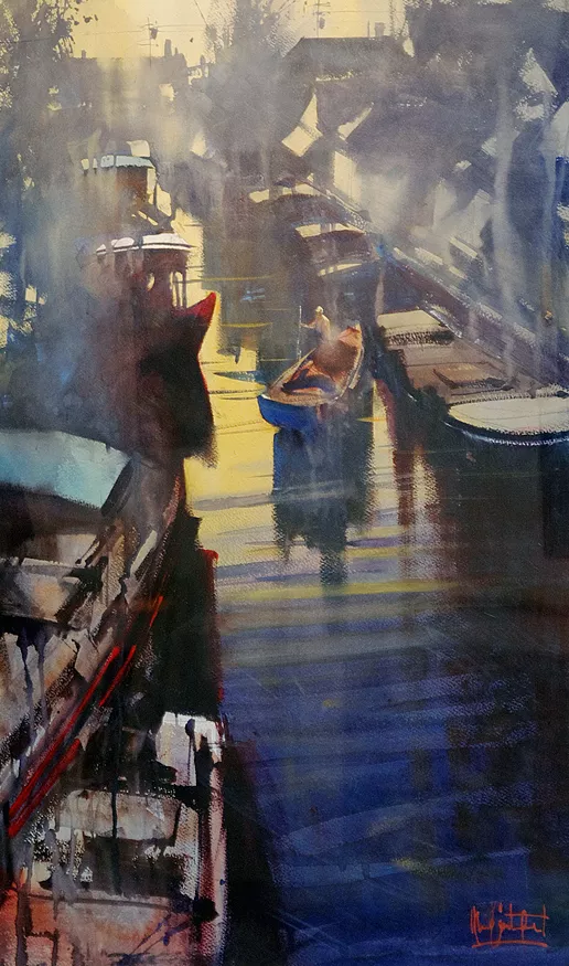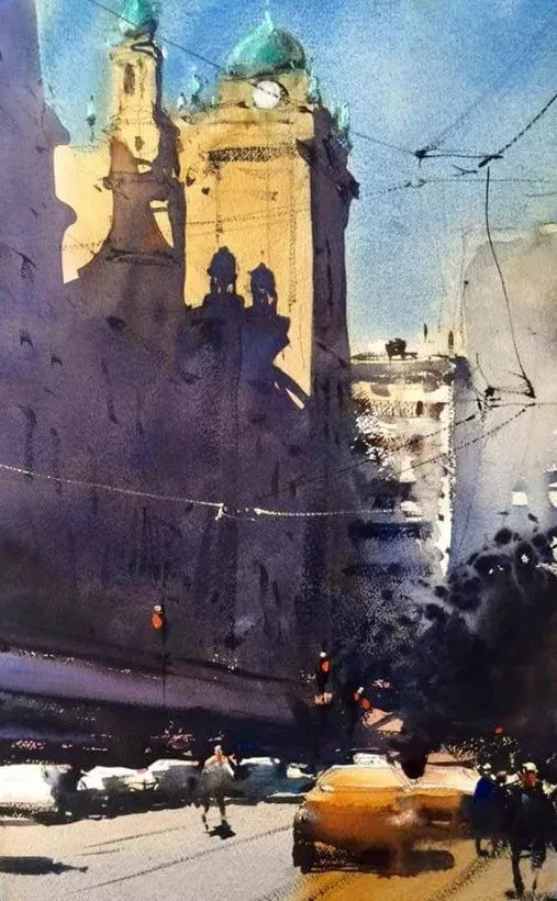 走进“全华水彩艺术馆”,就被阿尔瓦诺的水彩画吸引住了:身临熟悉的《朱家角》,经过《繁华时段》,邂逅了身边的《朋友》,在《红旗——上海》,《午后炽艳》和《灯笼》的感召下,钦佩之情油然而生。解读阿尔瓦诺的近作,就会发现他的水彩画艺术有着与众不同的独特内涵与风格。他不仅是一个灵敏激情的高产画家、浪漫奔放的性格画家、也是一位注重装饰的创意画家。