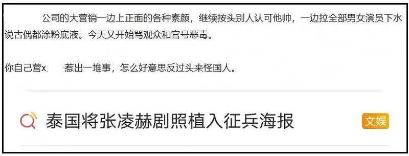热度真真假假的,都是平台说了算嘛,一时半会儿出不了结果,就知道也许是粉丝自发,也许是团队操作,《逐玉》宣传起了剧集海外热度,“泰国将张凌赫剧照植入征(zheng)兵(bing)海报”话题出现了。
