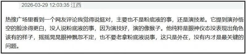 正如网友所说,虽然是粉底液将军五个字出了圈,但问题不在于粉底液,归根结底还是演技不行,明星上镜拍戏其实很少纯素颜,为什么张凌赫饰演的将军会遭到官媒批评,这才是他和他的团队需要反思的关键。