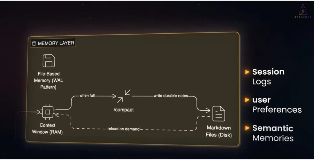 龙虾记忆层架构 引自ByteMonk