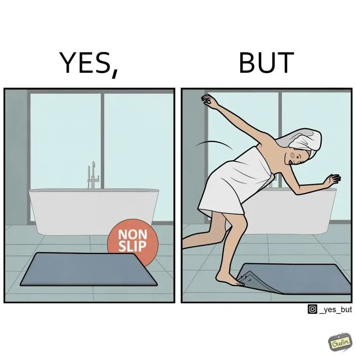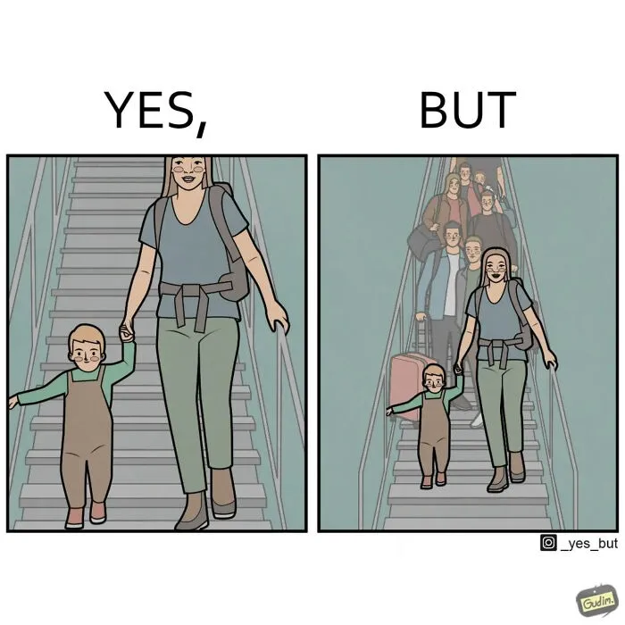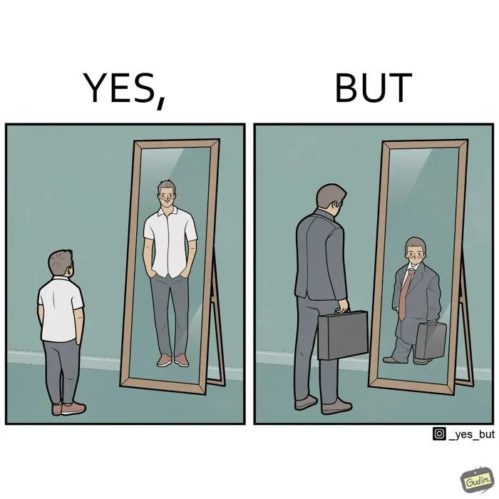 最近插画师Anton Gudim的新作又在国外火了。他的“Yes, But”系列漫画,用最简单的两格画面,戳穿了现代人最不敢面对的日常矛盾。