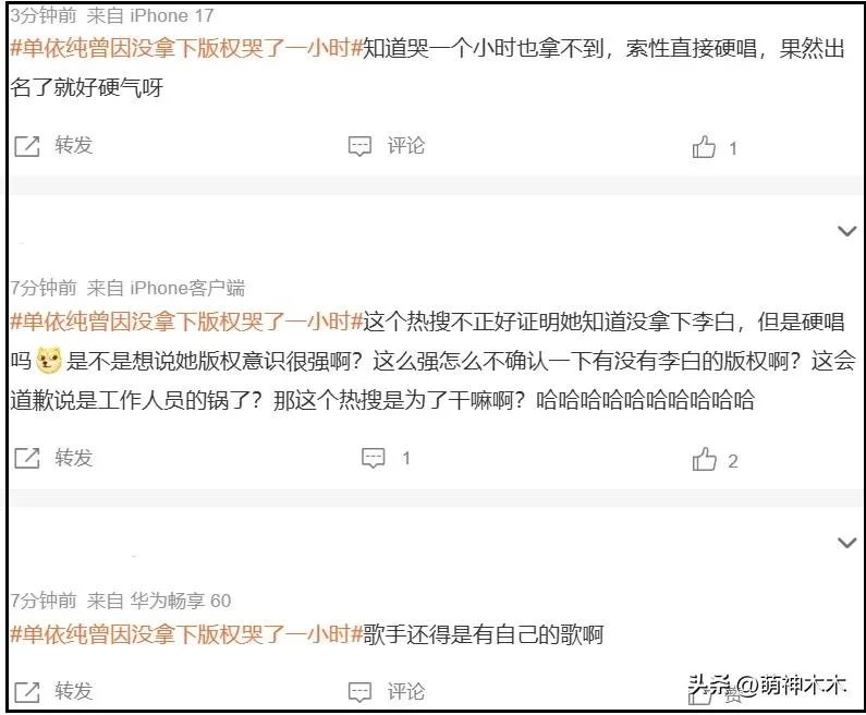 微妙的是,单依纯曾经没有拿下邓丽君《君》的版权而痛哭一小时,李荣浩炮轰单依纯侵权之后,相关话题还登上了热搜,更让网友怀疑单依纯演唱会上七首翻唱歌曲是否拿到授权。