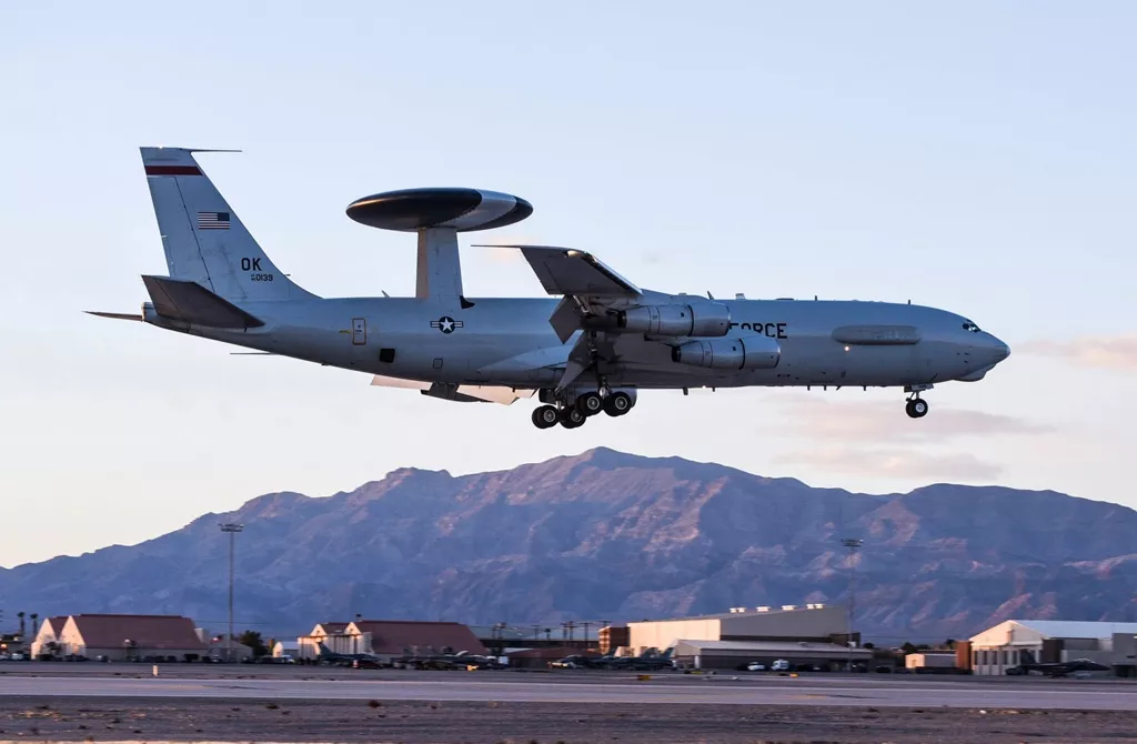 伊朗27日空袭沙乌地阿拉伯苏尔坦王子空军基地,据悉导致一架美军E-3“哨兵”空中预警与管制机严重受损,受损程度“恐难以修复”。画面为E-3预警机资料照。(图/撷取自美国空军官网)