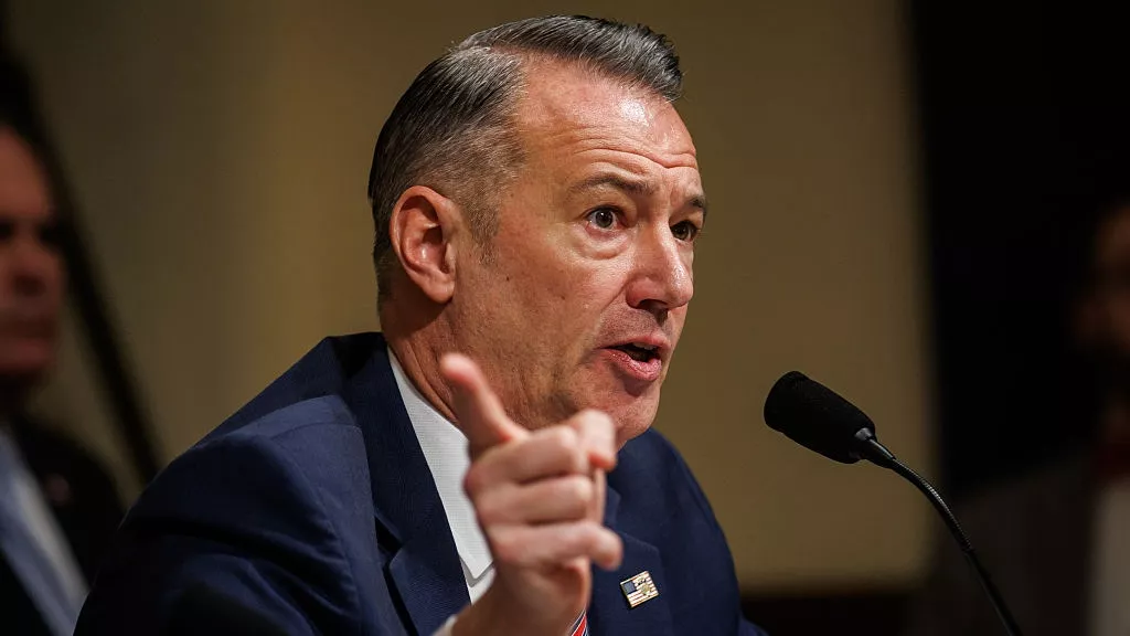 图为2026年2月10日,美国移民与海关执法局代理局长莱昂斯(Todd Lyons)在国会听证会中发表讲话。(Getty Images)