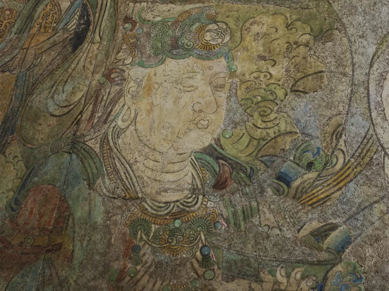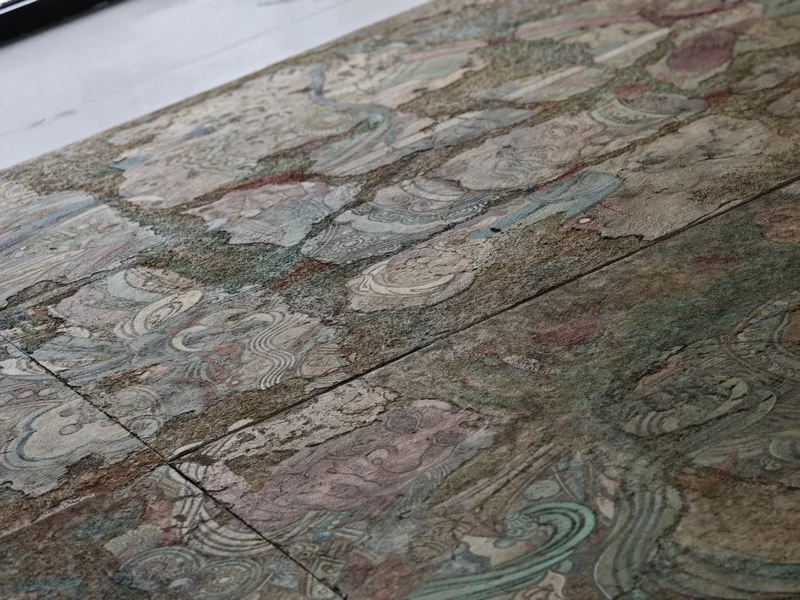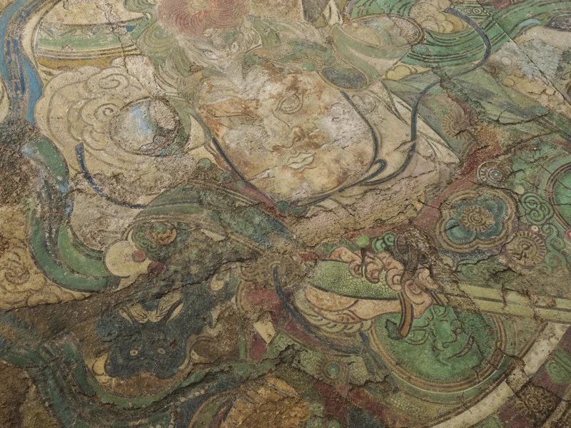 “沟壑纵横”的壁画表面