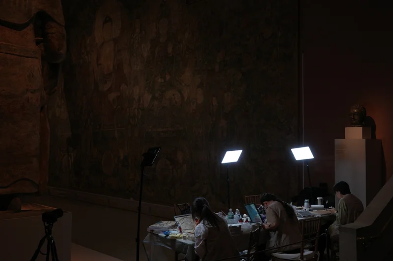 纽约大都会艺术博物馆中国艺术展厅内,一支来自中国艺术研究院的临摹团队两年前第一次近距离面对那幅震撼人心的元代巨制《药师佛佛会图》——这件从山西广胜寺流散海外、被切割重组的壁画,在异国他乡一直散发着恢宏庄严的气场。