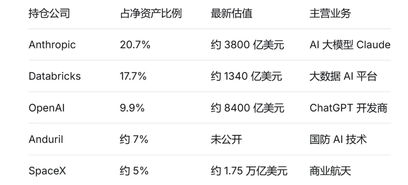 这三家AI巨头加起来,占VCX净资产的48.3%。