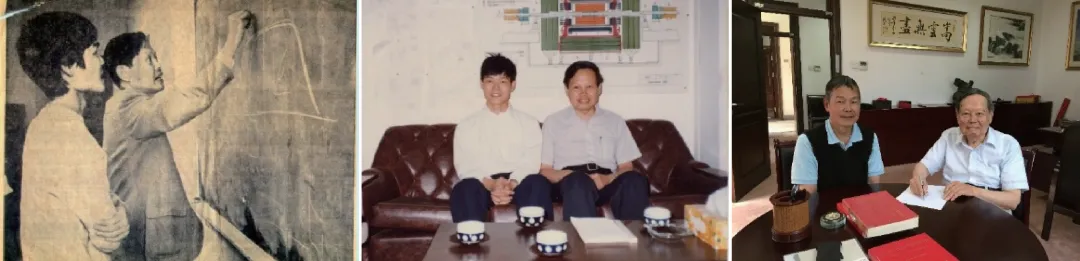 图1 我与老师杨振宁先生 (左)1973年,摄于纽约州立大学石溪分校;(中)1981年,摄于东京大学;(右)2016年,摄于清华大学