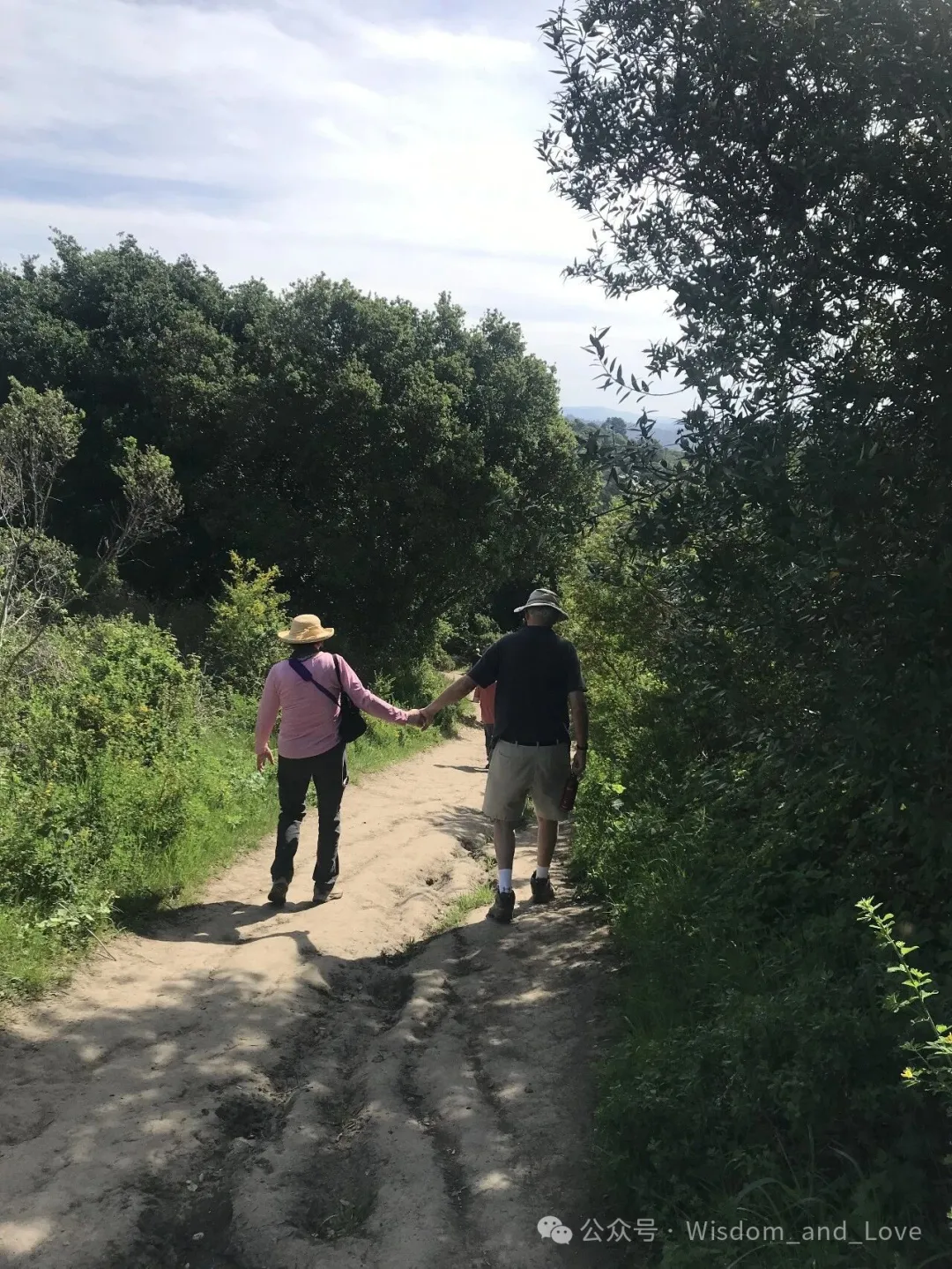 庆祝活动的第二天是行山。对伯克利毕业的师弟师妹来说,这是怀旧之旅,欧老师当年就是在行山时讨论他们的博士论文,有时从下午谈到天黑。下山时,我是队尾,拍下了欧老师拉着夫人的手下陡坡的背影。