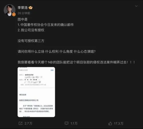 当然,李荣浩之怒,既是一次具体事件的情绪表达,也是一次关于行业秩序的公开声明。它提醒所有正在快速上升的歌手——当流量、舞台与商业体量同步扩大时,对音乐版权的理解和尊重,必须同步升级。