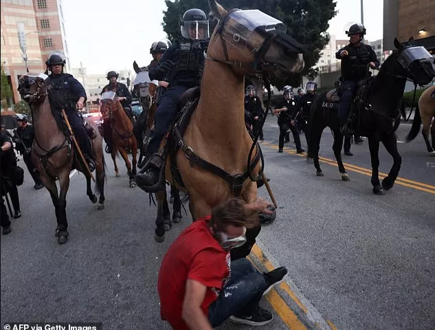 洛杉矶警察局宣布进入“战术警报”,现场连续发射催泪弹和烟雾弹。