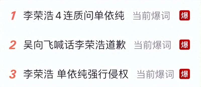 3月29日,李荣浩公开喊话单依纯侵权演唱歌曲《李白》事件持续发酵,多个话题爆上热搜。