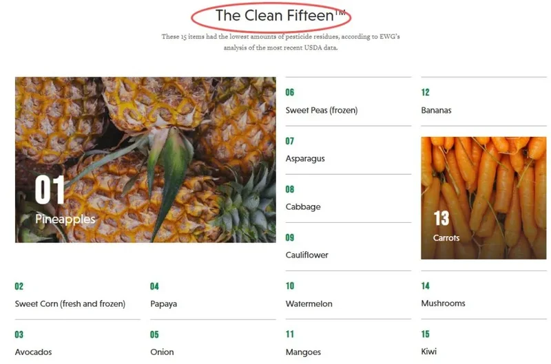 与此同时,EWG也发布了农药残留最低的“Clean Fifteen(干净15种)”: