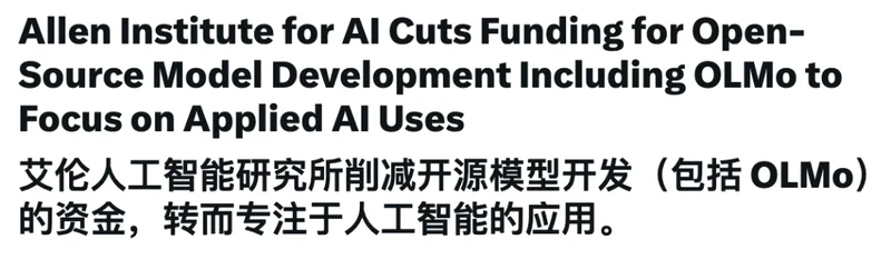 艾伦人工智能研究所 (Ai2),宣布 削减开源模型开发(包括OLMo)的资金,转向AI应用。