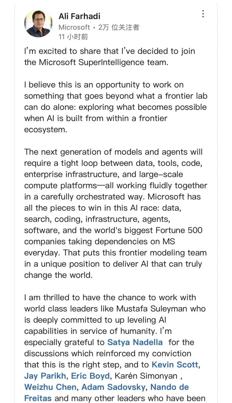 就在同一时间,AI2核心团队几乎被“打包带走”,集体流向微软。