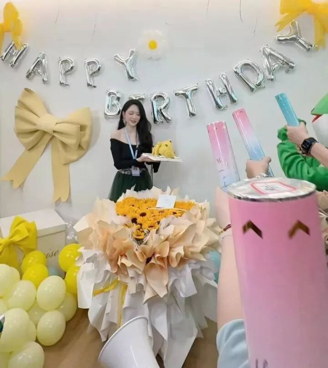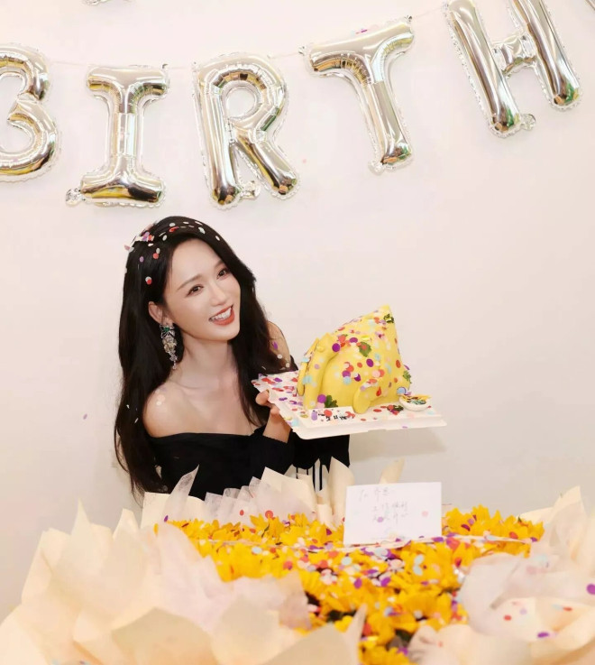 照片中,陈乔恩头戴精致金冠,置身于满室生日氛围里,她一手捧脸,一手捧着花束,身旁还簇拥着超大束向日葵,明艳的花朵与她灿烂的笑容相映成趣,尽显温馨浪漫。