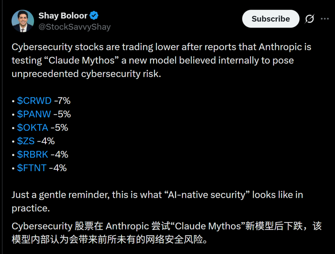 此前Mythos的传闻一出,网络安全股就已经下跌了。接下来,还有更可怕的事要发生吗?