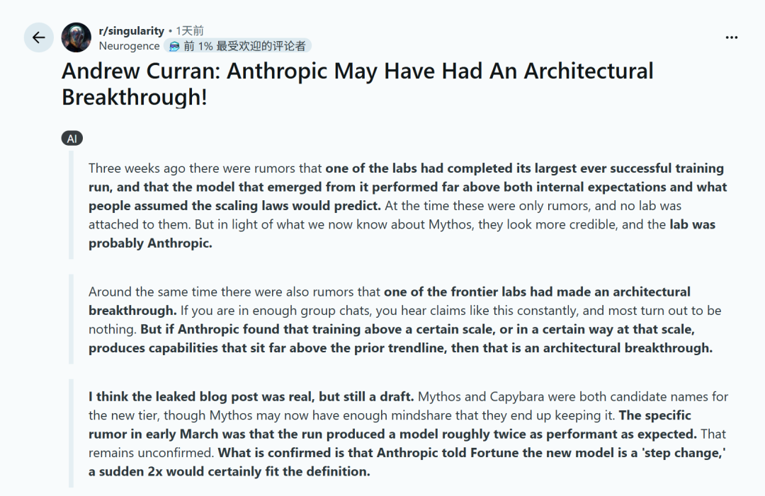 如果说GPT-4是一名优秀的大学生,那么Mythos很可能是由数千万名天才组成的智囊团。