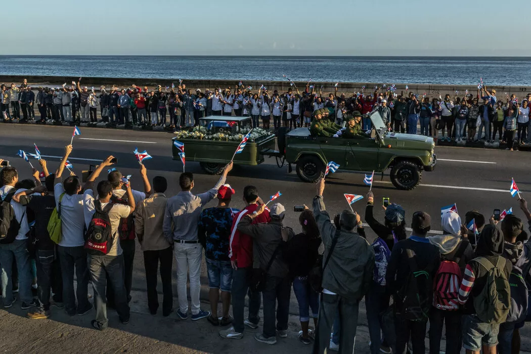 2016年,载有菲德尔·卡斯特罗遗体的灵车行经哈瓦那市中心。