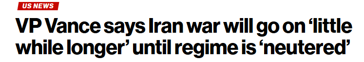 美国副总统万斯近日表示,美以针对伊朗的军事行动仍将“持续一段时间”,直至两国认为已足以“削弱”伊朗的威胁,从而避免短期内再次陷入类似冲突。