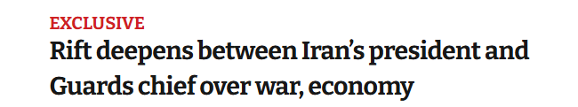 多位知情人士披露,伊朗总统佩泽希齐扬与伊朗革命卫队总司令瓦希迪之间,在战争应对方式及其对民生和经济的冲击上,已出现严重分歧。