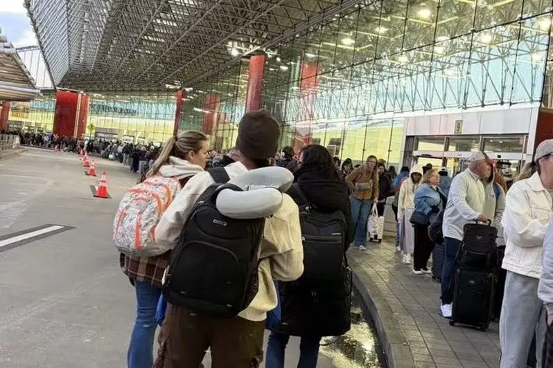 她说,刚到机场,就看到人龙早已「溢出」航站楼,队伍一路排到室外,并以蛇形绕行三圈,「像迷宫一样」。她指出,整个队伍缓慢挪动,几乎看不到尽头,有人不断查看时间、焦躁不安。