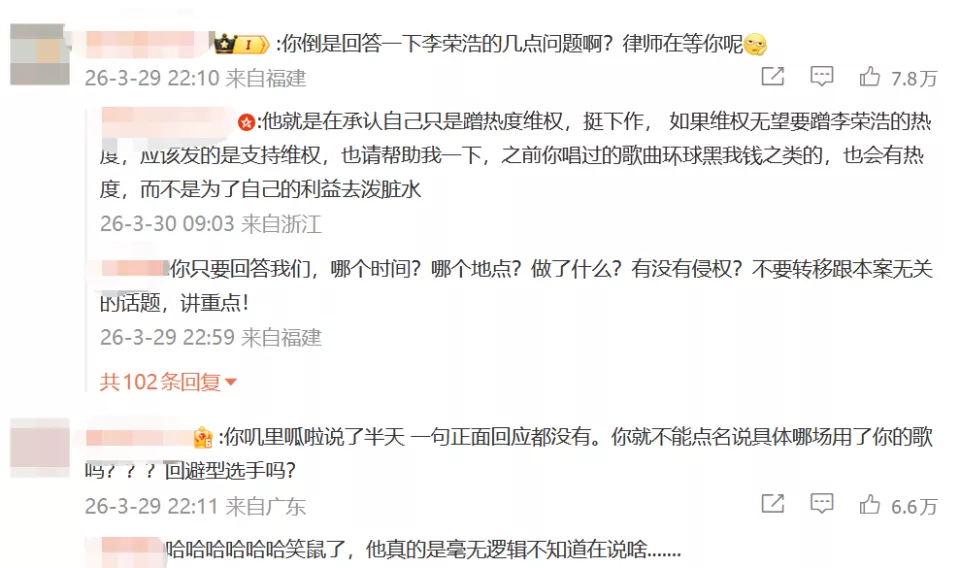 李荣浩行文严谨,态度强势,甚至把对方的后路都给堵死了——