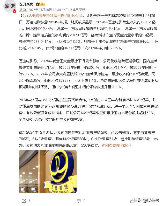 2024年4月,交易完成工商变更,万达电影的实际控制人从王健林变成了儒意系创始人柯利明。从那天起,万达电影就已经脱离万达体系了,只是还保留着“万达电影”这个名字。