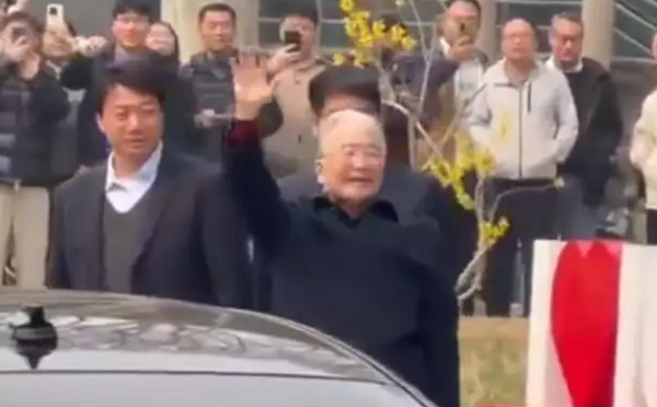 网传一段视频显示,满头白发的温家宝步履轻盈地走出北京朝阳区中国科学院地理所,在保安人员陪同下,向现场民众微笑挥手、抱拳致意。围观者有人呼喊「总理好」,并纷纷用手机拍摄。
