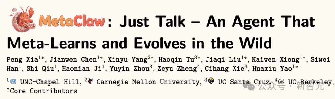 MetaClaw框架由北卡罗来纳大学教堂山分校、卡内基梅隆大学、加州大学圣克鲁兹分校与加州大学伯克利分校联合推出。