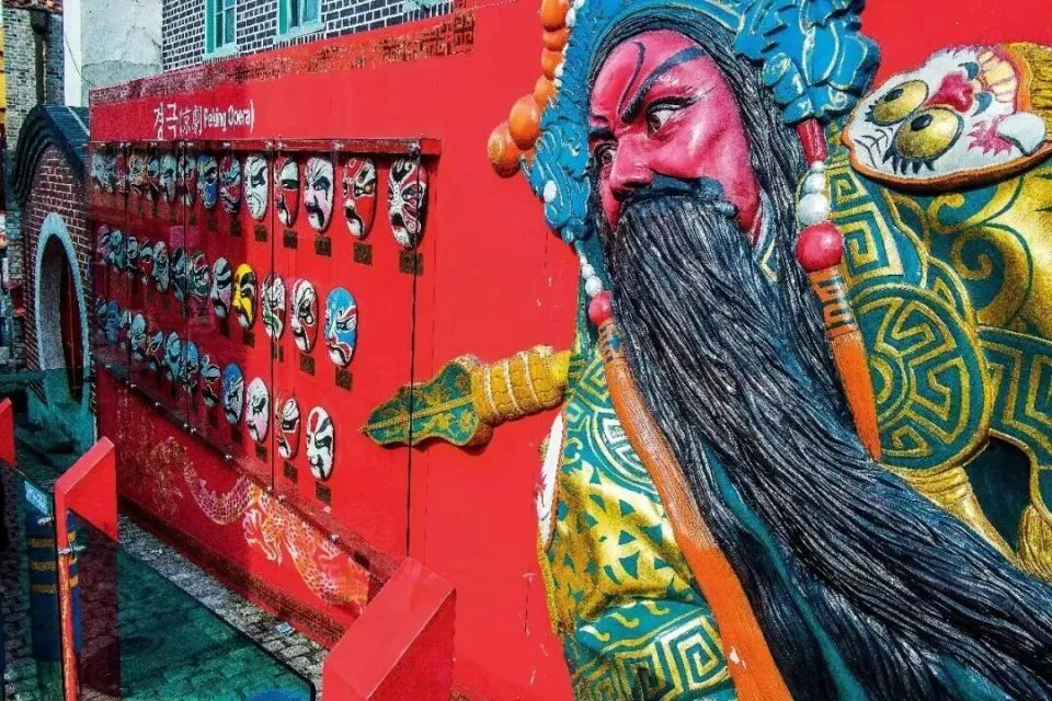 在仁川中华街上体验完“中韩合璧”的美食,沿着《三国演义》的壁画墙走着,周禧丰有些神秘地要带记者参观一个“信仰场所”。佛教?儒教?道教?他都摇头。推开义善堂的门,一字排开的五间房里,分别供奉着妈祖、观音、关公、财神爷,还有来自东北民间狐仙信仰的胡三太爷。仁川的前辈华侨们口口相传,这位胡三太爷“是最灵的”。