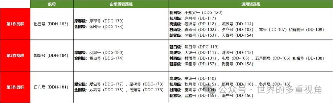 虽然航母改装、“战斧”试验的工作都还没完成,但是不妨碍现在剖析一下,日本海自这3个航母战斗群的实力如何。