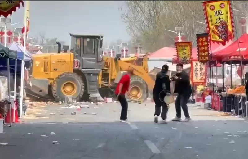 中国北京市房山区大韩继大集,29日惊传铲土机四处辗压酿10多人死伤。(图撷自「@DXDWX999」X帐号)