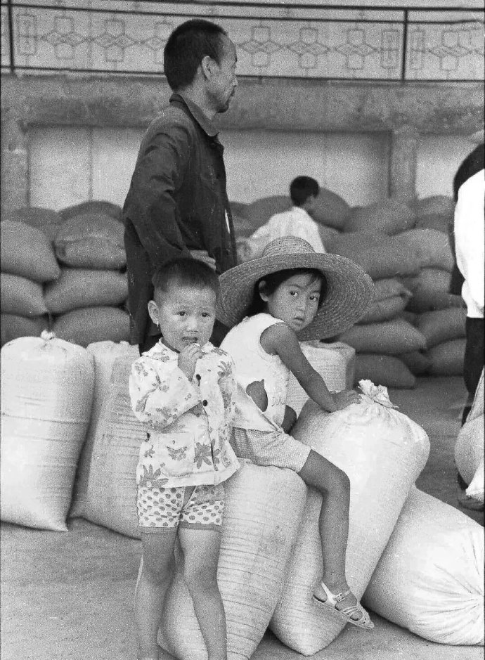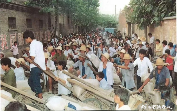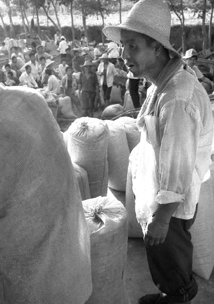 图:1993年,信阳农村, 农民交公粮的热闹场面