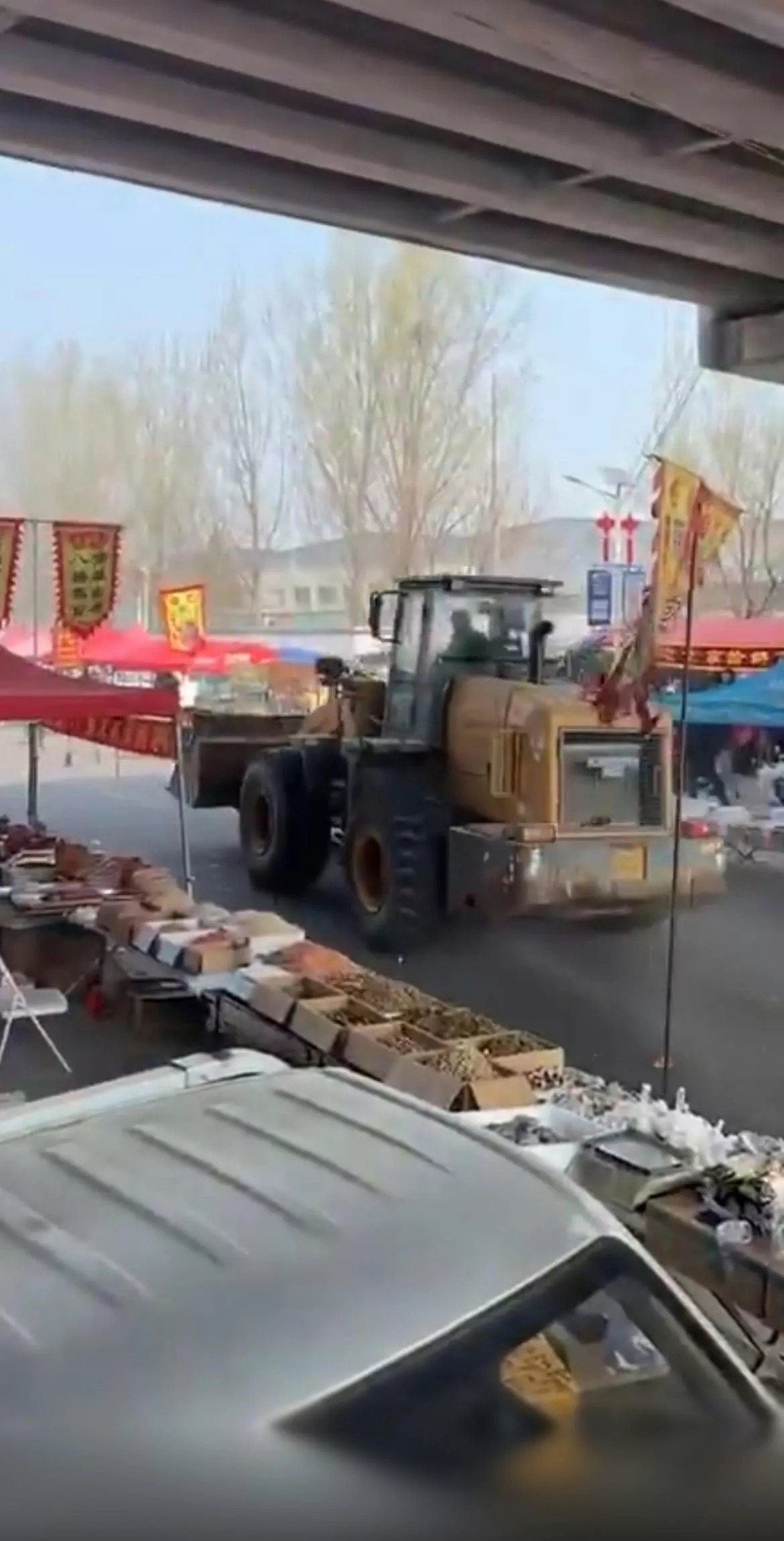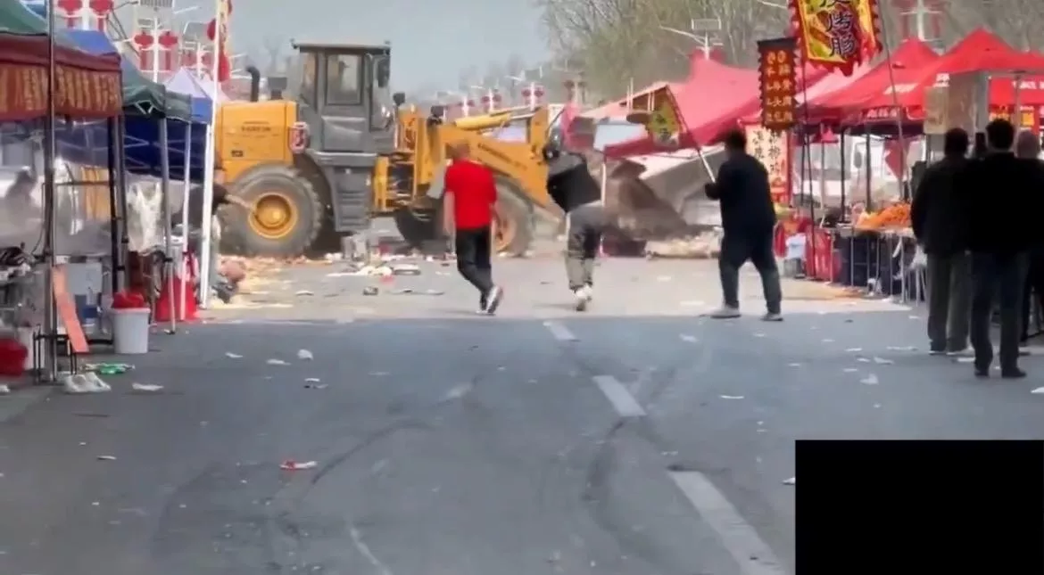 根据流出的视频片段,29日上午约11时许,正值市集人流高峰期,一辆黄色重型铲泥车突然闯入人群密集的购物区域并在狭窄的市集街道上加速行驶,随后铲泥车调转车头,左冲右突,导致多个贩售农产品的摊档被瞬间推平。期间,曾有愤怒民众朝铲泥车投掷板凳,企图阻止司机疯狂的行为,但收效甚微。