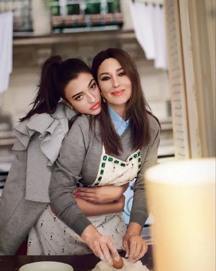 妈妈莫妮卡·贝鲁奇也一起上镜,母女关系很亲密↓↓