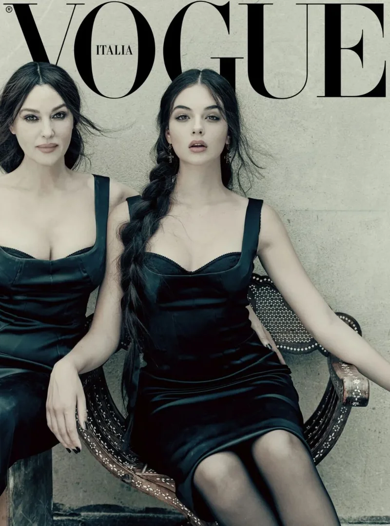 很明显,莫妮卡·贝鲁奇想在小女儿身上复制大女儿的成功之路,大女儿戴娃·卡索也是15岁出道,在妈妈的护航下登封意大利版Vogue↓↓