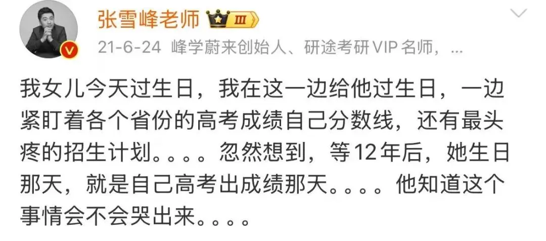 过往十年,张雪峰在社交媒体上很少谈及自己的家庭,但他的柔情却毫不吝啬地给了女儿。
