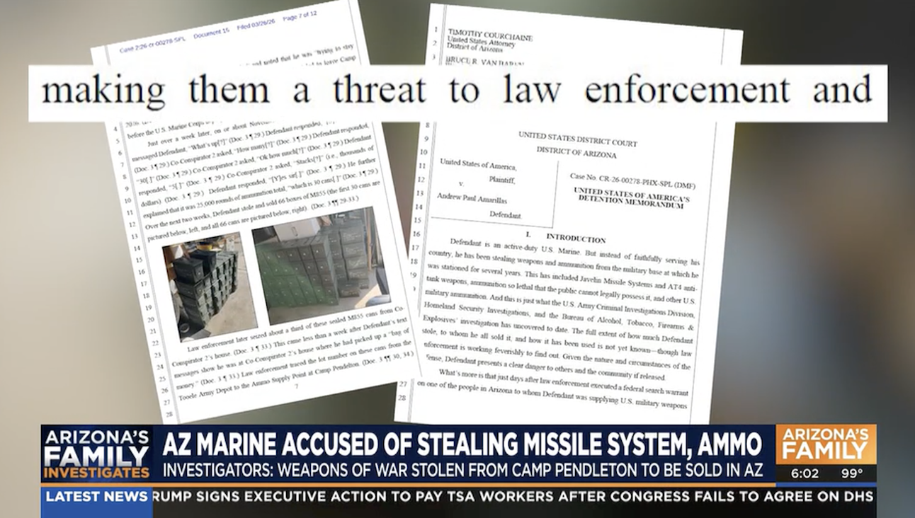 根据联邦法院文件,这名士兵名叫Andrew Paul Amarillas,服役于加州Pendleton军营,担任弹药技术专家。他的职责,本应是管理和维护武器安全。但正是这个岗位,让他掌握了军火库的关键权限。调查显示,从2022年到2025年,他利用职务之便,多次将军用物资悄悄转移出营地,并运往亚利桑那州进行非法交易。
