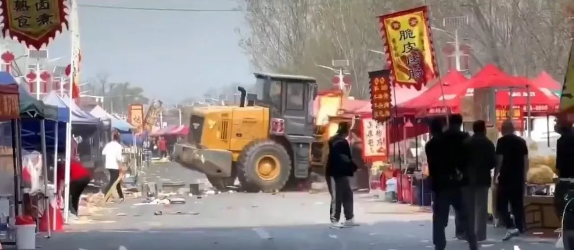 根据流出的视频片段,29日上午约11时许,正值市集人流高峰期,一辆黄色重型铲泥车突然闯入人群密集的购物区域并在狭窄的市集街道上加速行驶,随后铲泥车调转车头,左冲右突,导致多个贩售农产品的摊档被瞬间推平。期间,曾有愤怒民众朝铲泥车投掷板凳,企图阻止司机疯狂的行为,但收效甚微。