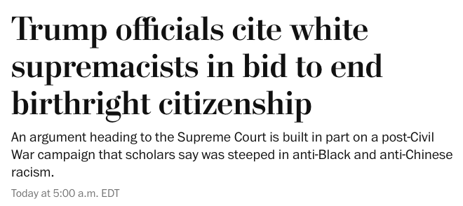 然而,有法律界人士指出,川普政府在向最高法院提交的法律文件中,引用了19世纪部分反对“出生公民权”学者的观点。这些观点当时正是针对华人移民提出的,带有明显的排华和种族主义背景。