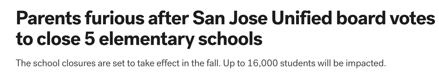 在持续数周的争议与抗议声中,圣荷西联合学区(SJUSD)董事会最终还是在周四晚投下关键一票,批准关闭5所小学。这一决定,将在今年秋季正式生效,影响数千名学生和家庭,也让不少家长感到愤怒与无力。