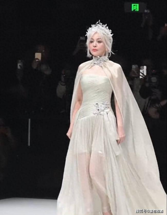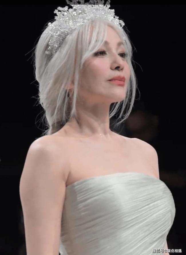 没错!就是那位54岁的演员王琳,一出场直接给全场干懵了!你们猜她穿的嘛?一身纯白短裙婚纱,不是那种老气横秋的款式,简约又精致,衬得她身形倍儿挺拔;再看头发,一头清冷的银发,不是那种显老的白,是那种自带高级感的银灰色,梳得利落又洋气,往T台上一站,那气场,简直了!