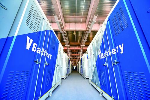 ②大连液流电池储能调峰电站的电池集装箱。