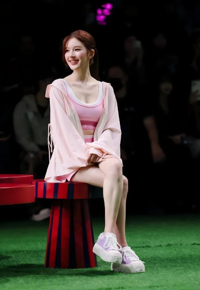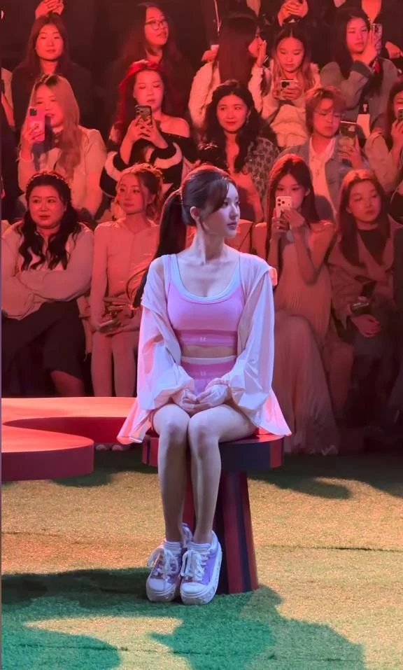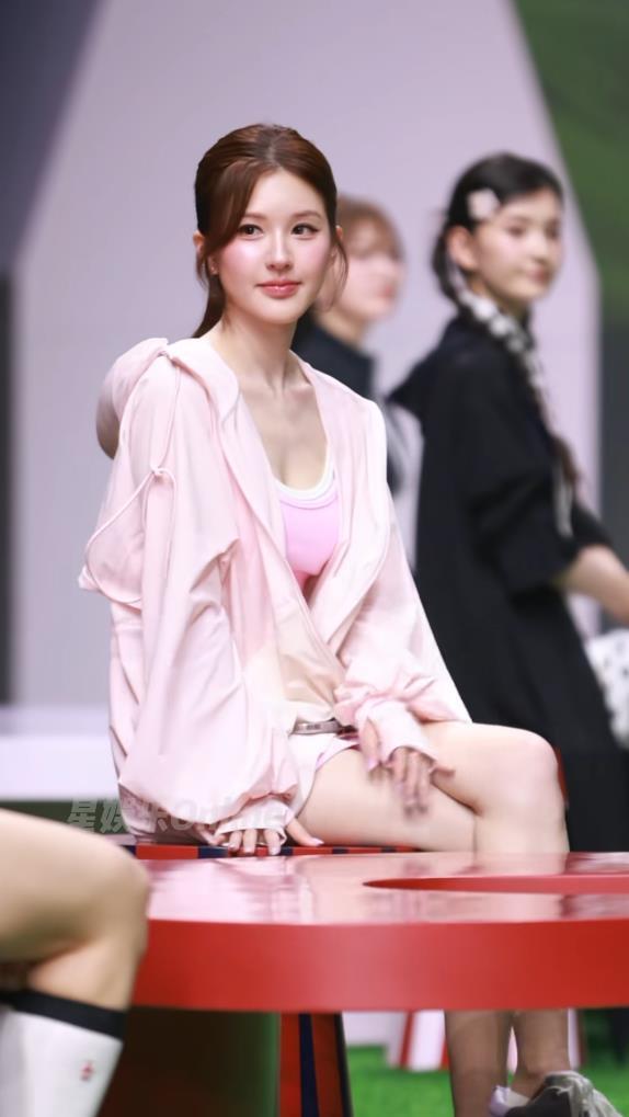 这次亮相,赵露思选了一套极具少女感的粉白运动风套装:内搭是亮眼的玫粉色背心与短裙,外罩一件浅粉色外套,再配上利落的高马尾,整个人从头到脚都透着元气。更绝的是她的状态——面部饱满红润,肌肤在镜头下透亮无瑕,配合清透的“蜜桃妆”,视觉上甜美又清新。