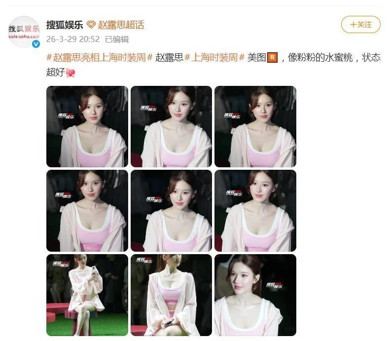 上海时装周的一场大秀,硬是被赵露思的生图状态“刷”成了焦点。当其他看秀嘉宾还在比拼气场时,她凭一套粉粉嫩嫩的造型,直接美上了热搜,被网友形容为“行走的人间水蜜桃”。