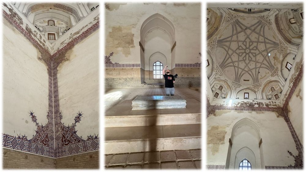 在陈放石棺的穹顶墓室后面,各有一个拱顶门廊,这就是伊斯兰和波斯建筑中标志性的伊万(Iwan)结构。它是一种三面围墙、一面敞开、上方带有拱顶的长方形高大空间,常作为清真寺、宫殿或神学院的宏伟入口。