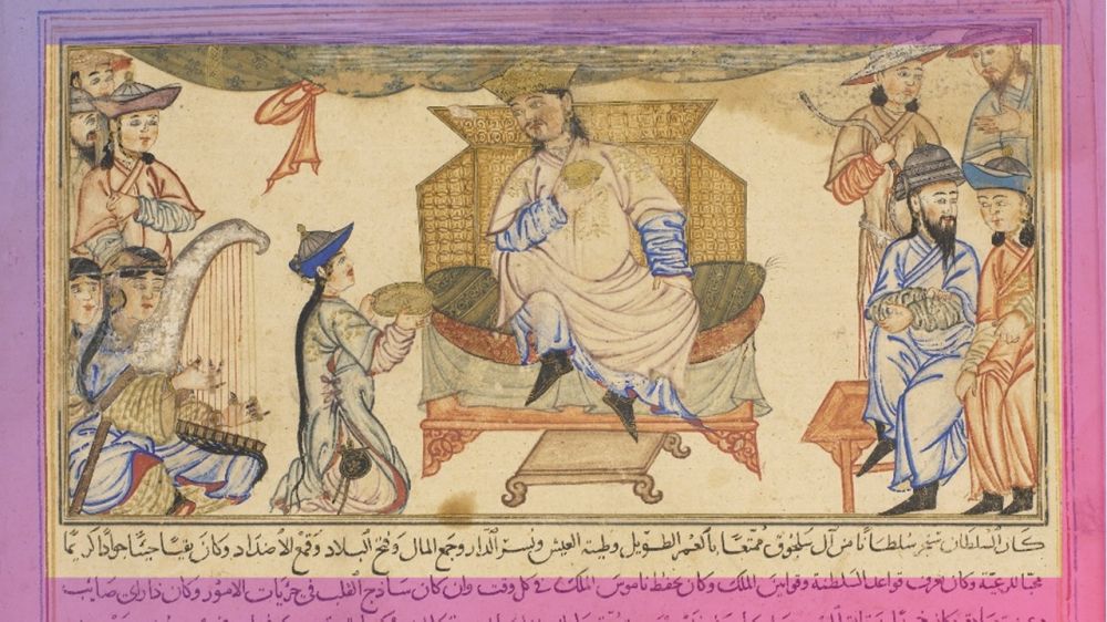 1307年波斯出版的【编年史全集】的插图描绘了桑贾尔的加冕典礼,一位清朝模样的西夏中国人看着好生奇怪。